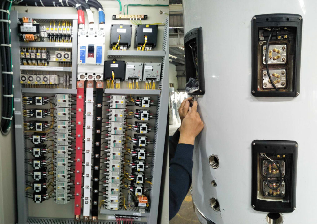 - 三相工業/商業大功率 6~300kw 電熱水器,潔淨、安全、無汙染,不需燃油或瓦斯鍋爐的儲存及管控,可以節省空間和運營成本。